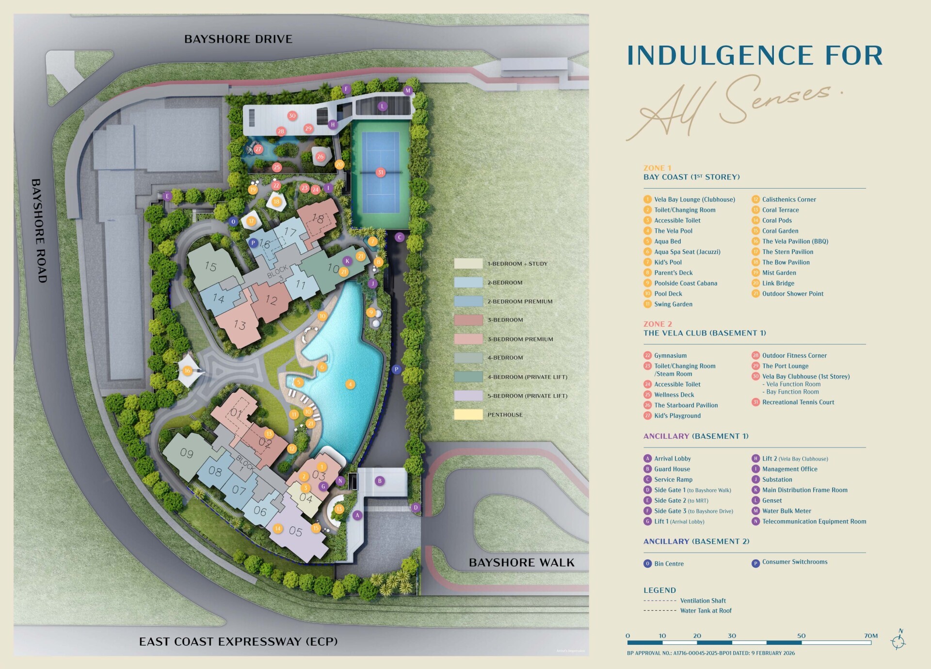 Perfectly situated along Bayshore Road in District 16, Vela Bay offers a highly convenient address within Singapore’s sought-after East Coast enclave. Nestled in a mature residential neighbourhood, the development provides a well-balanced lifestyle where daily essentials, leisure options, and nature are all within easy reach. Residents can transition effortlessly between work, school, and recreation, while enjoying a calm, coastal-inspired home environment.